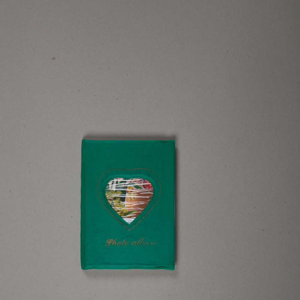 Photo álbum es una serie de 3 publicaciones con tres historias diferentes, una por cada color de álbum (rojo, verde y azul). Cada historia se construye con una serie de imágenes que van armando un relato. Primero agrupadas por color, en composé con su contenedor, pero luego ocurren otras cosas. El objeto álbum es de en un bazar chino de calle San Luis. Es un viejo álbum de hule, seguramente de los 90, tiene folios transparentes que contienen las fotos impresas en papel fotográfico. También tiene un corazón calado en la tapa, por el que se deja ver la imagen de una rosa fantasía.
